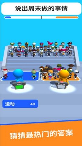猜他们的答案是一款益智解谜手游,玩家需要时刻观察观众的反应并选择最受欢迎的答案。每一轮游戏都充满独特性,玩家需要保持警惕应对众多竞争对手。游戏采用了可爱的卡通画风,清晰度高,让玩家沉浸在可爱的世界中。