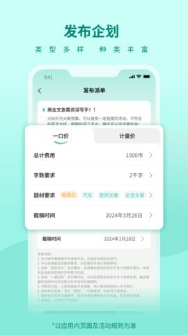 4、寻笔APP不仅是一个集约文代写、委托创作于一体的交易平台,更是一个为用户提供优质服务的平台。