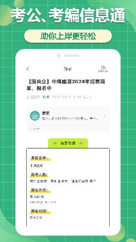 3、该应用是一款移动应用,专注于全国范围内的公务员、事业单位、国企、教师、银行等公职招聘信息。