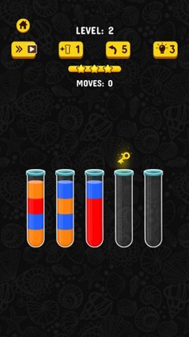 1、玩家需要对不同的色彩元素进行分类,通过交替倒水的方式,让每个瓶子的液体都变成同一种色彩。