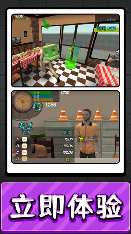 2、除了丰富的场景外,游戏还设置了各种有趣的任务,如找工作、购物、约会等。