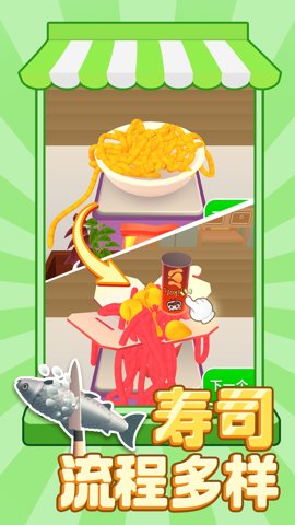 3、无论是传统的寿司还是创意十足的特色寿司,玩家都可以根据自己的喜好和想象力,制作出各种意想不到的美味佳肴。