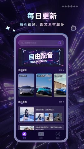 1、软件还具备图文发圈和创作配音等功能,让用户能够轻松分享和创作自己的作品。