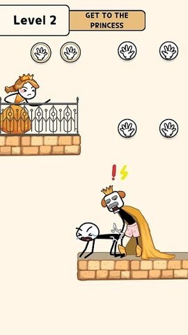 3、利用火柴人长臂的能力来打倒敌人,解救被困的公主。
