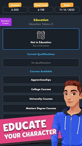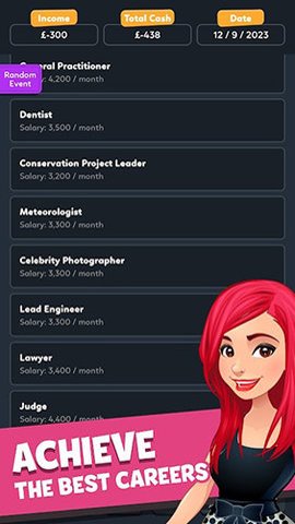 3、玩家可以选择不同的职业路径,尽可能多地赚钱,成为亿万富翁。