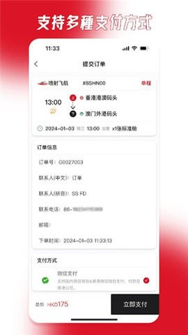 2、港澳快船App也提供多种支付方式,以满足用户的需求。