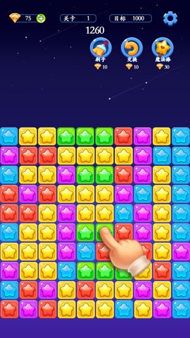 4、玩家通过滑动屏幕,交换相邻星星的位置,使相同颜色的星星连成一线(横、竖、斜均可),即可消除并获得分数,让玩家在游戏中不断挑战自我,体验消除的乐趣。