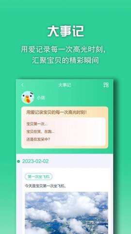 3、除了成长记录外,亿奇宝贝还提供了功能丰富的大事记模块,让用户用爱记录每一个高光时刻,汇聚宝贝的精彩瞬间。