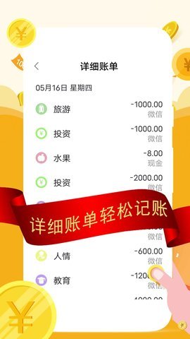 3、账目自动统计,用户只需查看数据就能清楚了解自己的财务状况。