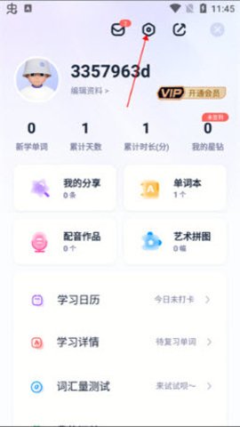 2、在个人中心页面,用户可以点击设置图标进入全局设置页面,将不熟悉的单词添加到单词书中,方便随时复习。