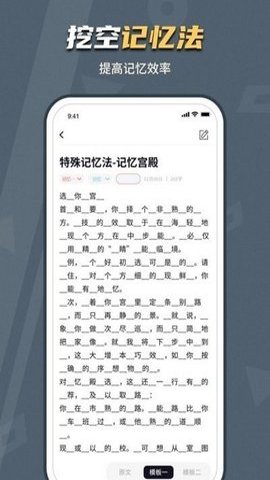 3、在保存好要记忆的内容后,用户可以打开,自由减少原文的参照内容,从而提升对课文的记忆效果。