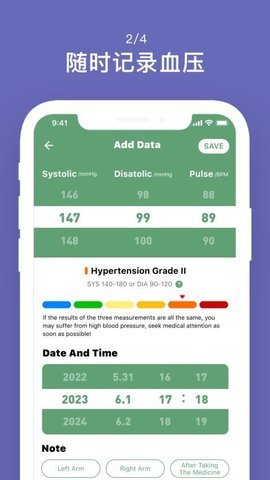 1、长期追踪用户的血压幅度,并能快速生成分析结果,帮助用户识别血压趋势,早期发现潜在的健康。