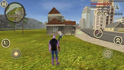 灭霸绳索英雄是一款战斗策略、动作战斗和冒险游戏,玩家在游戏中可以体验到丰富多样的游戏玩法和挑战。当角色周围有车辆时,屏幕左侧会显示一个汽车头按钮,点击后即可抢夺车辆。在操纵车辆时,屏幕右下角有两个踏板,左边是刹车按钮,右边是油门,屏幕左下角则有一个类似方向盘的控制器,用来控制方向。