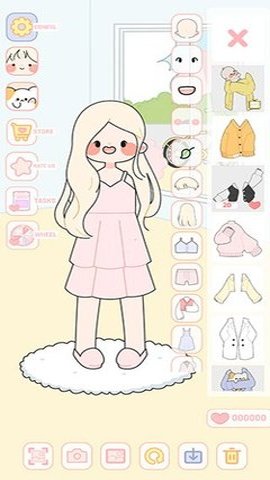 3、玩家可以通过点击底部菜单中的按钮,选择不同的服装、发型、配饰和场景,自定义自己喜欢的娃娃形象。