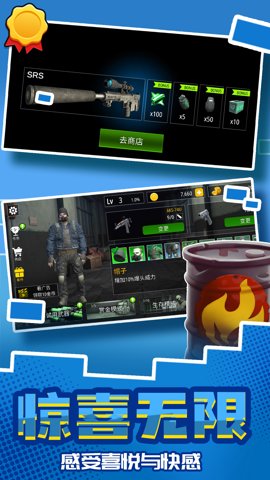 1、而为了获得更多强大的武器,玩家需要不断挑战关卡,击败僵尸,解锁新的武器或升级现有武器。