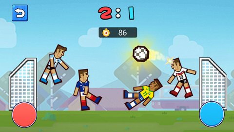 2、游戏中的2v2赛制、东倒西歪的球员、不时出现的乌龙球都让这个游戏与众不同。