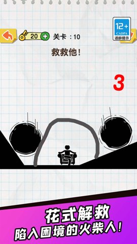 2、而通关方式更是脑洞大开,打破了传统的思维模式,让玩家可以尝试各种不同的方法来帮助火柴人顺利通过关卡。