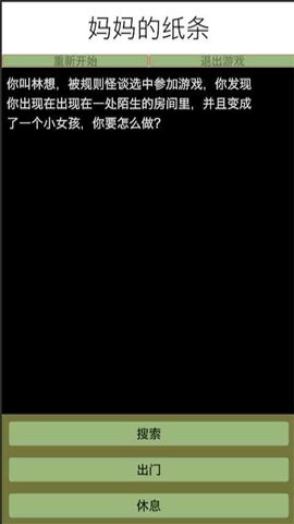 2、规则脱出是一款文字解谜冒险手游,玩家扮演一个小女孩穿越到一个怪谈世界,母亲离开家并留下三张纸条,内容含糊不清,需要玩家仔细甄别。
