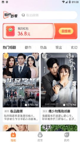 3、用户可以在这里畅享精彩的短剧内容,参与互动赚取红包,体验到更加丰富有趣的观影乐趣。