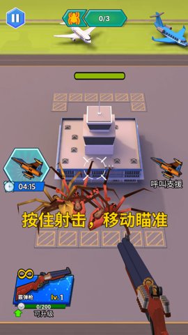 使命救援是一款风格卡通的塔防类益智游戏,玩家需要通过射击来抵御各种变异生物的攻击。玩家可以利用各种枪支在空中对怪物进行扫射,击败它们并获得丰厚的奖励。除了射击外,玩家还需要不断收集道具和资源,用于对武器进行升级,提升自己的战斗力。