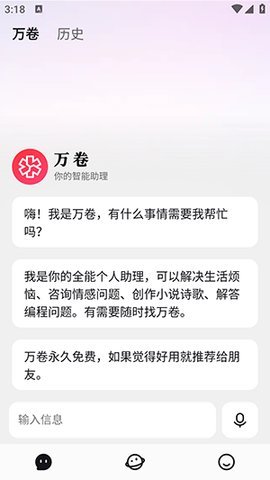 万卷AI是一款功能强大的写作工具,不仅可以帮助用户进行写作、写作文、手机写作等任务,还可以在工作、学习和生活中提供全面的写作支持。这款AI软件可以智能学习用户的喜好和习惯,根据用户的行为和反馈进行个性化推荐,使得用户体验更加个性化和便捷。 万卷AI利用深度学习和自然语言处理技术,可以高度智能化地与用户进行交流,根据用户需求提供个性化的建议和推荐。