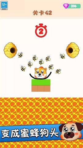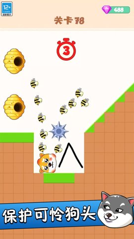 4、通过成功完成游戏关卡可以获得钻石奖励,用来更换创意皮肤,保护宠物狗免受蜜蜂的叮伤。