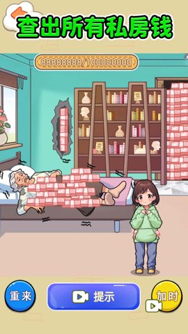 1、玩家需要仔细搜索每个角落,包括抽屉、柜子、床底等等,寻找藏匿的私房钱。