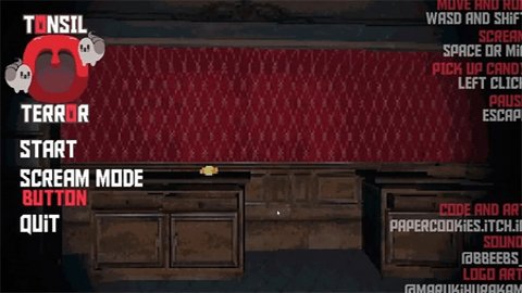 扁桃体惊魂是一款独特的密室逃脱游戏,与传统的第一人称视角游戏不同,这款游戏采用了一种全新的游戏机制。玩家需要利用尖叫声来照亮前方的道路,寻找隐藏的糖果并解开谜题,最终逃离幽魂出没的密室。 玩家扮演一名被困在黑暗密室中的角色,视野被限制在黑暗中,只有当发出尖叫声时,角色的口腔会短暂地张开,让玩家能够观察周围环境。