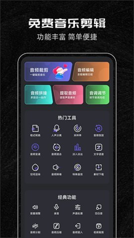 音乐剪辑助手是一款功能强大的手机铃声剪辑软件,不仅可以进行铃声剪辑,还可以进行音频剪辑、音乐制作等多种操作。这款应用专为音乐爱好者设计,提供了全面的音乐剪辑和制作功能,让用户可以轻松地对音乐文件进行剪辑、拼接、混音和效果处理等操作。 这款音乐剪辑助手APP集成了多种功能,包括音乐剪辑、混音、音效添加、格式转换等,让用户可以一站式处理音频。