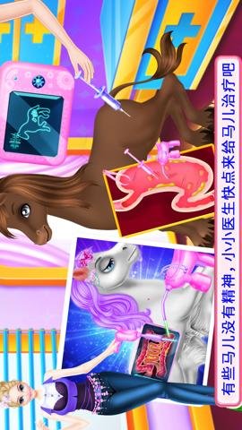 3、玩家还可以带小马去医院查看它的肠道,清理掉肠道内的垃圾和细菌并消炎,为小马准备好新鲜的草料,清洁小马的水盆,修剪它的尾巴等等。