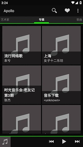 3、Apollo音乐播放器支持通过列表、专辑封面、艺术家或播放列表等多种方式浏览音乐库,满足不同用户的浏览习惯。