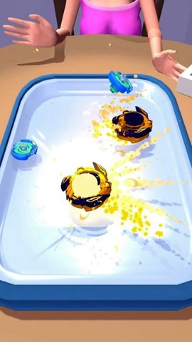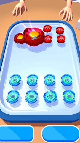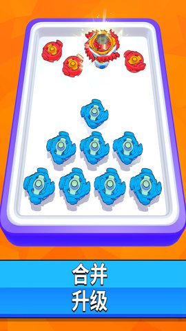 1、游戏的玩法非常简单,玩家从一个基本的陀螺开始,通过不断合并刀片来壮大自己,最终在竞技场上击败对手,成为胜者。