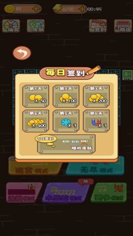 1、玩家只需要通过上下左右滑动屏幕来控制角色的移动,躲避各种障碍物,并且尽可能多地吃到金豆。