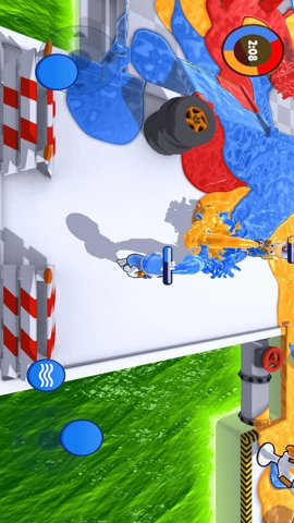 喷射大作战是一款充满挑战和策略性的益智游戏。地图上分布着三支队伍,分别是红队、蓝队和黄队。每支队伍都拥有自己的基地和喷洒染色剂的塔楼,玩家的任务就是利用染色剂将整个领地染上自己队伍的颜色,不留任何空白。