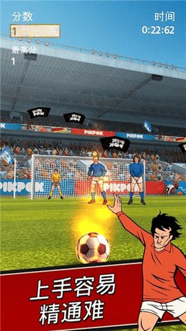 3、简单的操作方式让玩家能够轻松控制足球的方向和力度,踢中网里即可取得胜利。