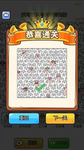 3、眼神真不错不仅是一款挑战观察力和耐心的游戏,更是一段迷人的休闲体验,让玩家在忙碌的生活中找到片刻的放松与乐趣。