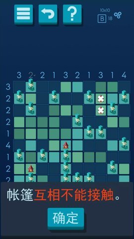 帐篷与树是一款轻松休闲类游戏,不仅是一种趣味休闲游戏,更是一种锻炼大脑的最佳伙伴。在这款原创益智玩家需要在每棵树旁边放置一个帐篷,但要注意不能让帐篷相互接触。这种独特的设计使得游戏乐趣无穷,让玩家每次都感受到全新的挑战。