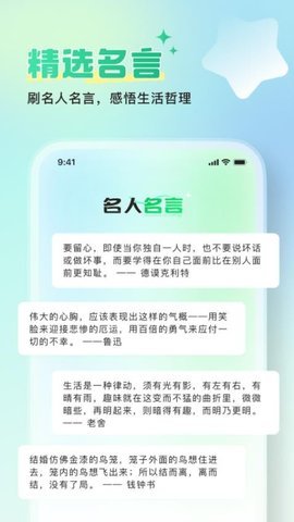2、通过阅读名人名言和励志故事,用户可以获得正能量的激励,帮助他们更积极地面对生活,追求更好的自己。