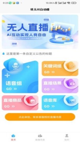 埃元AI自动播是一款功能强大的直播工具,手机直播app应用,支持定制不同场景的视频内容,提高商品的使用效率和直播的针对性。用户可以通过该工具快速制作高质量、高效率的直播视频,满足用户对直播视频制作的需求。 软件界面设计简洁明了,用户可以轻松找到需要的功能,提供了一站式服务,从视频制作到播放都可以在同一个平台完成,方便用户快速搭建直播场景。