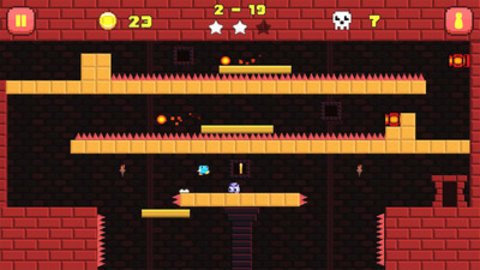 3、游戏的画面采用了纯粹的复古像素画风,整体色调偏暗,而出现的机关则以红色更加突出显眼,增加了游戏的视觉冲击力。