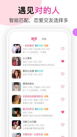 4、用户可以轻松结识同城附近的异性,通过多种方式展开互动,寻找心仪的另一半、知心朋友或红颜蓝颜知己。