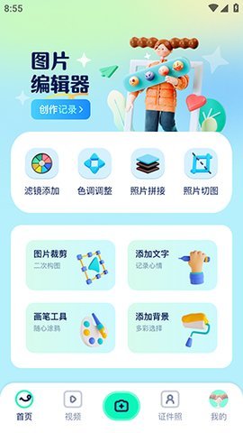 1、Piczoo相机APP不仅仅是一款拍照软件,它还集成了丰富的图片编辑和视频剪辑功能。