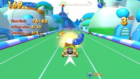 3、注意驾驶过程中的突发事件,并在平坦大道上使用加速道具。