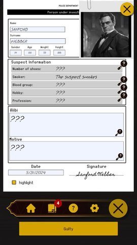2、通过对话树选择进行询问,观察嫌疑人的表情和反应,选择合适的对话选项以获取更多线索。