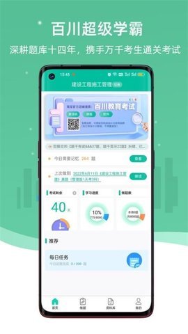 百川超级学霸是一款功能全面、资源丰富、使用便捷的学习题库应用,旨在帮助用户高效备考和提升学习效果。这款应用提供了独家密押题目,涵盖多个学科领域和考试类型,用户可以通过章节练习、模拟考试、错题复习等功能来巩固知识点和提升解题能力。 百川超级学霸采用游戏化的学习方式,激发用户的学习兴趣和动力,让学习变得更加轻松愉快。