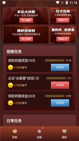 1、通过完成平台上的各种任务来获取抽奖次数,用户可以天天抽取想要的游戏皮肤,并及时进行兑换,享受各种小游戏的乐趣。