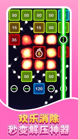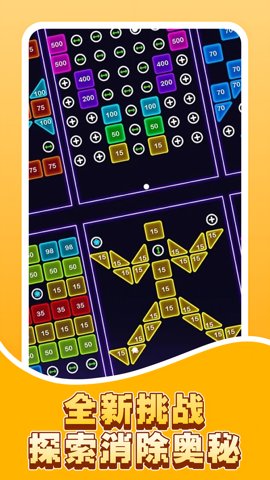 方块狂轰是一款经典的益智游戏,玩家只需轻触屏幕,就能发射物理球并击碎砖块。这款游戏充满刺激和挑战,让玩家在碎砖的世界里放松大脑,享受游戏带来的乐趣。 玩家需要尽可能多地用球击碎砖块,以获得高分并通过关卡。