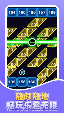 1、玩家可以通过手指按住屏幕并移动瞄准,将球扫向砖块并摧毁所有砖块。