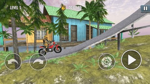3、玩家将扮演一名极限车手,驾驶着自行车在赛道上飙车,挑战各种高难度的障碍物。