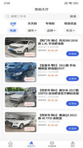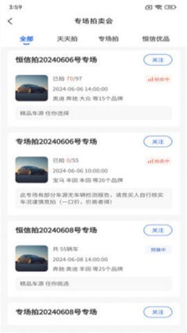 2、无论是新车还是二手车,恒信拍都提供专门的拍卖活动,用户可以轻松观看,并通过在线流程快速完成交易,拍卖成功后还有详细的过户流程,方便用户操作。